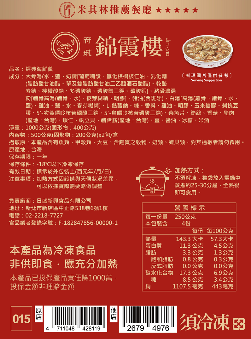 錦霞樓 招牌海鮮羹(每盒約1200g)