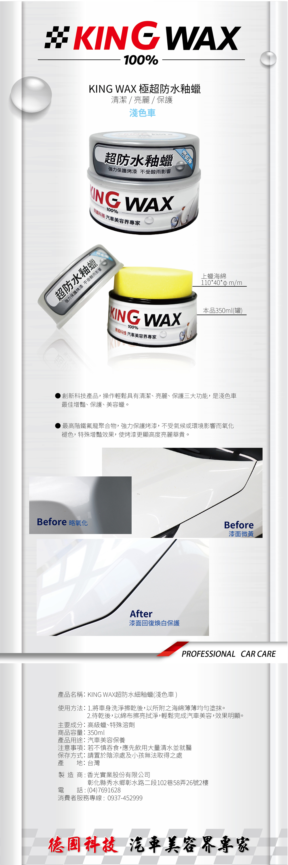 【汽車百貨】KING WAX超防水釉蠟-淺色車