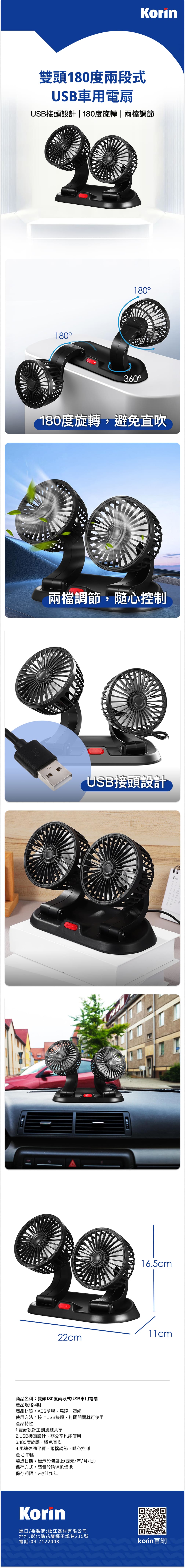 雙頭180度兩段式USB車用電扇