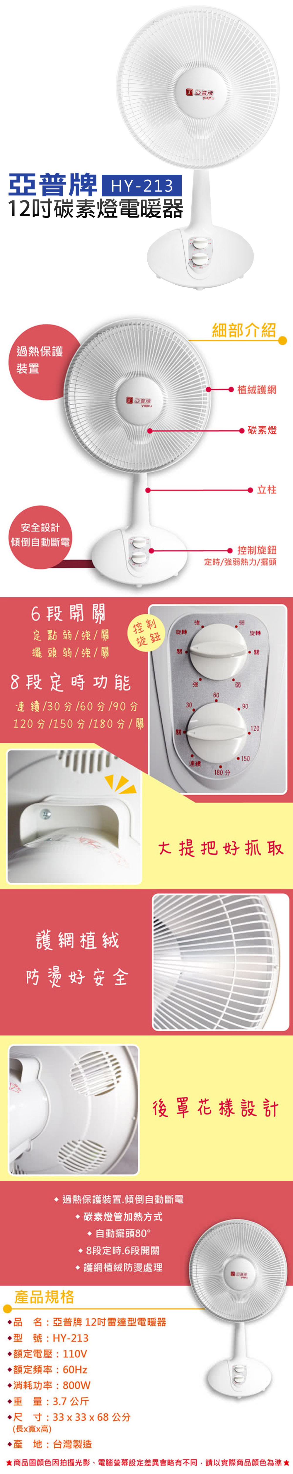 亞普HY-213 12吋鹵素燈電暖器