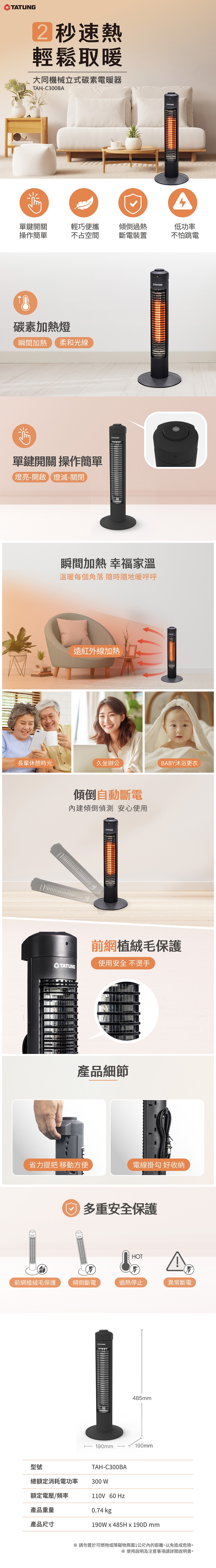 大同TAH-C300BA直立式碳素電暖器