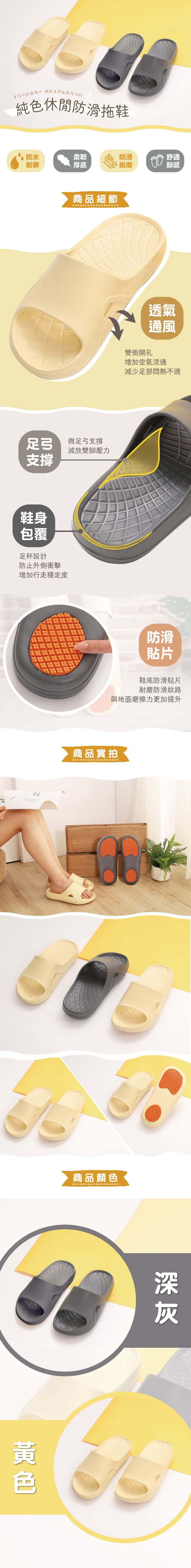 純色休閒防滑拖鞋-黃25