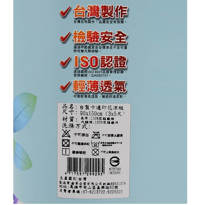 台製卡通印花涼被(顏色隨機出貨)