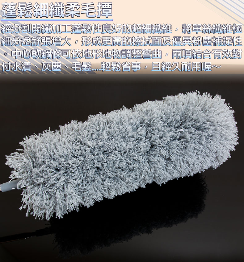 1.任意彎折式清潔,高低處縫隙皆可,輕鬆吸附灰塵。2.不銹鋼杆身,結實耐用,不易生銹,自行調節縮短86cm伸長可到295cm。3.五段式纖維織法,不易掉毛屑,除塵不傷材質。
