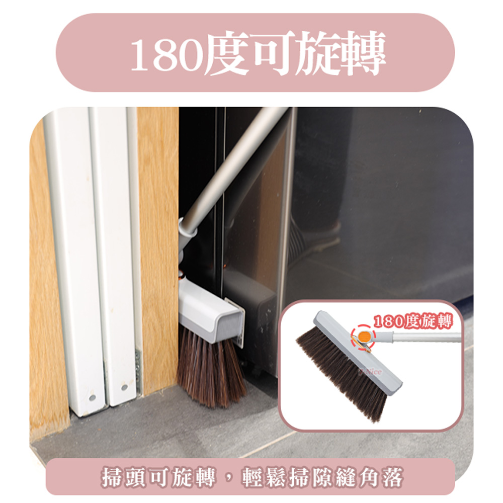 1.掃把邊刷毛斜角設計,邊角易清潔2.大容量可站立防風畚斗,防止垃圾溢出3.加長梳齒,一刮即掉,解放雙手
