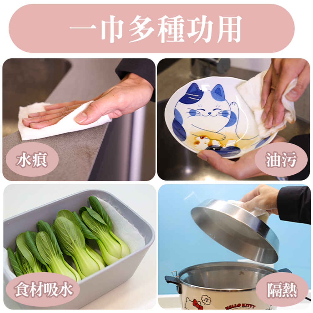 [7-Nice]竹纖天然加厚週拋擦巾40張x6捲(共240張)+奇麗屋直橫兩用廚房紙巾架x1