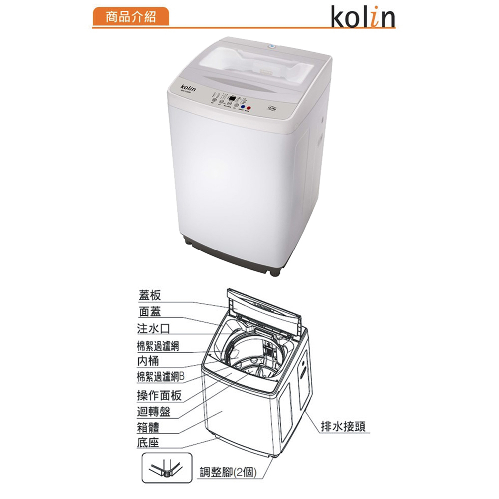 Kolin 歌林 12公斤單槽全自動定頻直立式洗衣機 BW-12S06