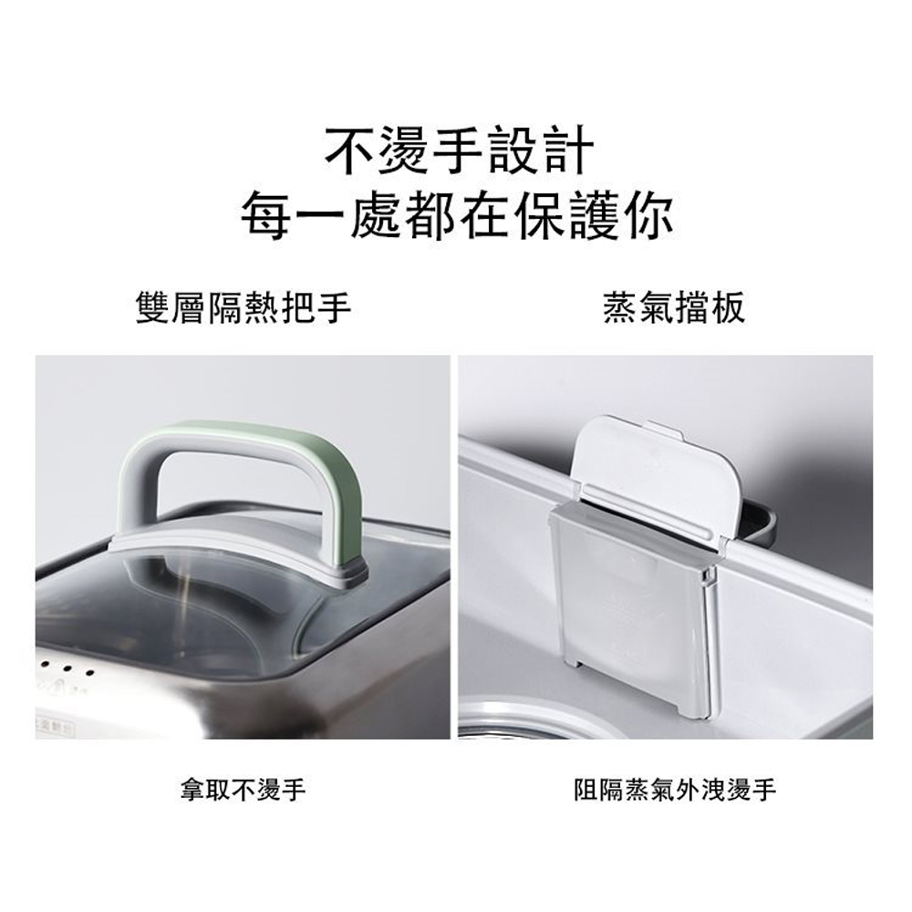 型號:G561 容量:2公升 電壓:110V 頻率:60Hz 消耗功率:1250W 尺寸:寬28.5深33.5高29.5cm 重量:4.3kg 材質:不鏽鋼 產地:中國 保固:1年 水箱容量:2L 鍋體容量:5L 鍋蓋尺寸:W29.5 x D20 x H16.5cm 蒸架尺寸:W28.7 x D19.2 x H1cm 積汁盤尺寸:W29.5 x D 20 x H3.8cm 聚能環 尺寸:W13 x D13 x H7.3cm 鍋身尺寸:W33.5 x D28.5 x H13cm 商品材質:鍋蓋 加厚鋼化玻璃 蒸架 食品級304不鏽鋼 , 積汁盤 、聚能環 、鍋身 聚丙烯PP塑膠(不含BPA) 電檢:R31476