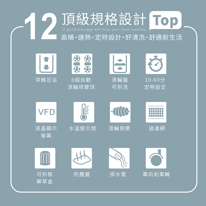 自動滾輪泡腳機石墨烯滾輪底盤52公分超高桶身可拆式底盤更衛生底部滾輪設計更好拖拉排水管放水設計更便利可加精油或藥草包促進循環自動加熱、恆溫控制SS-609為升級版石墨烯滾輪盤