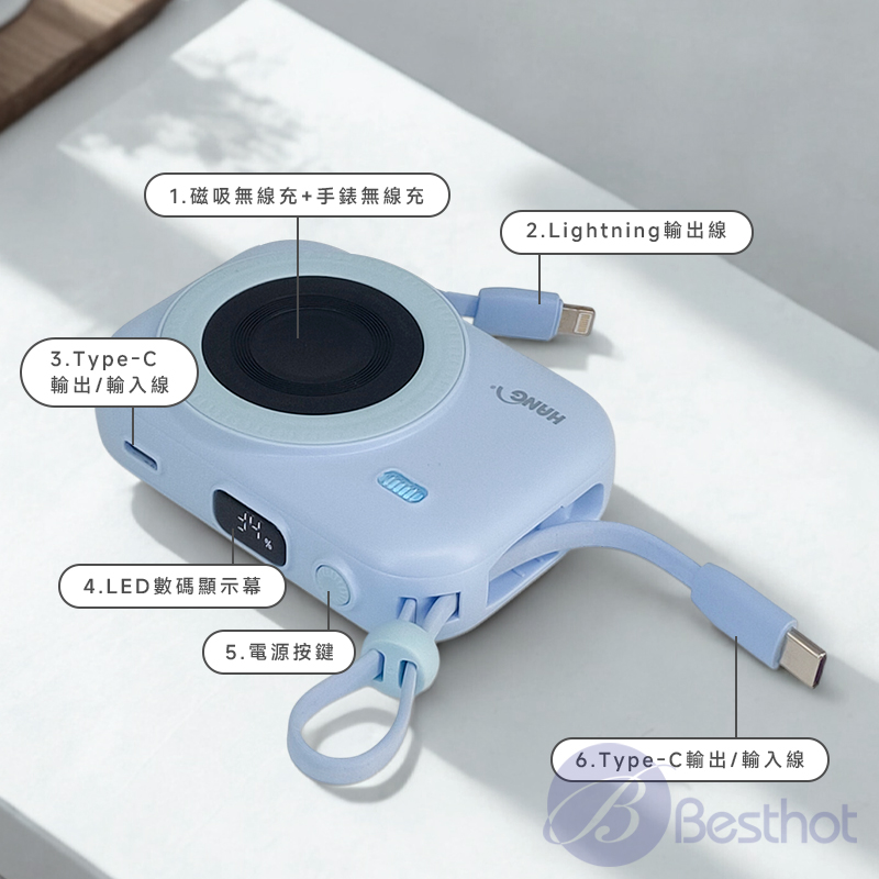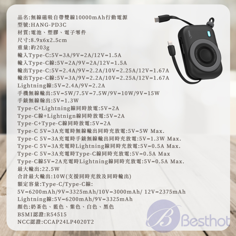 【Besthot】HANG PD3C無線磁吸自帶雙線10000mAh行動電源