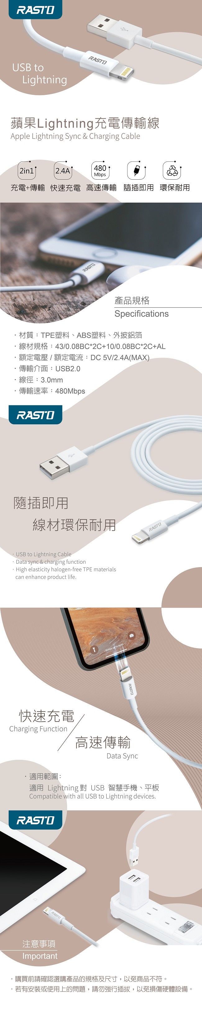[ RASTO ] RX35 蘋果Lightning 充電傳輸線雙入組1M+2M