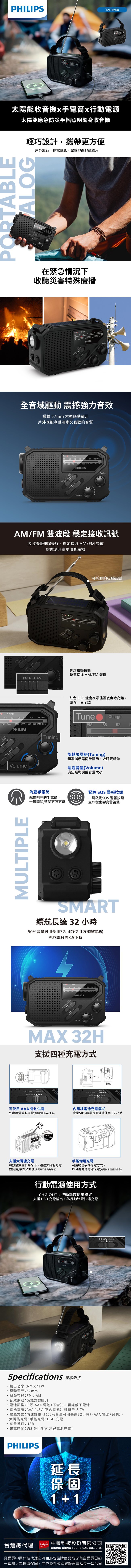 [PHILIPS] 太陽能應急防災手搖照明隨身收音機-TAR1609