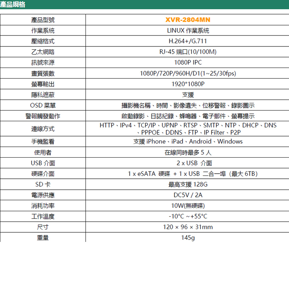 昌運監視器 XVR-2804MN 200萬 支援多頻道同步觀看 IPC轉HDMI 訊號轉換盒