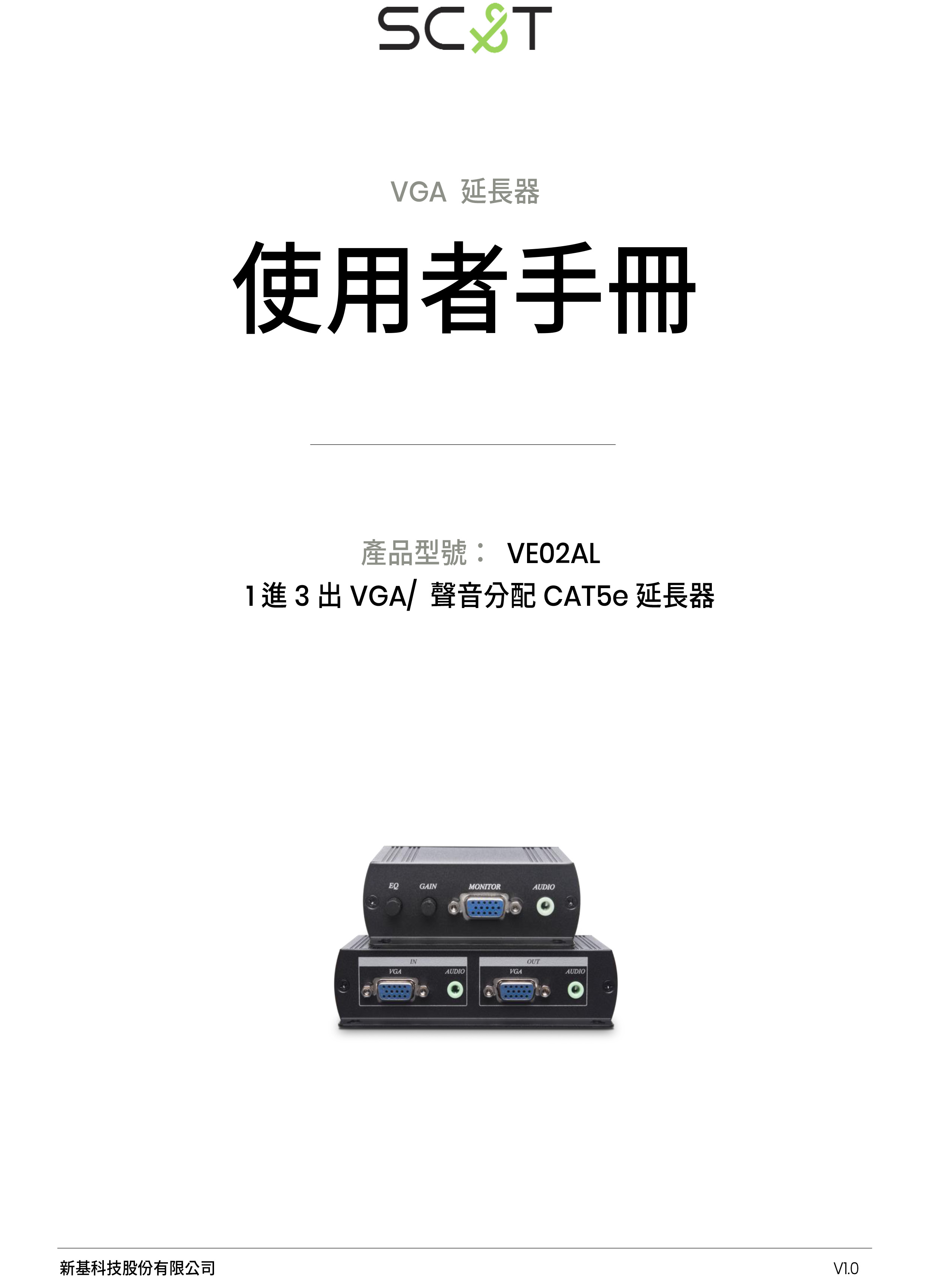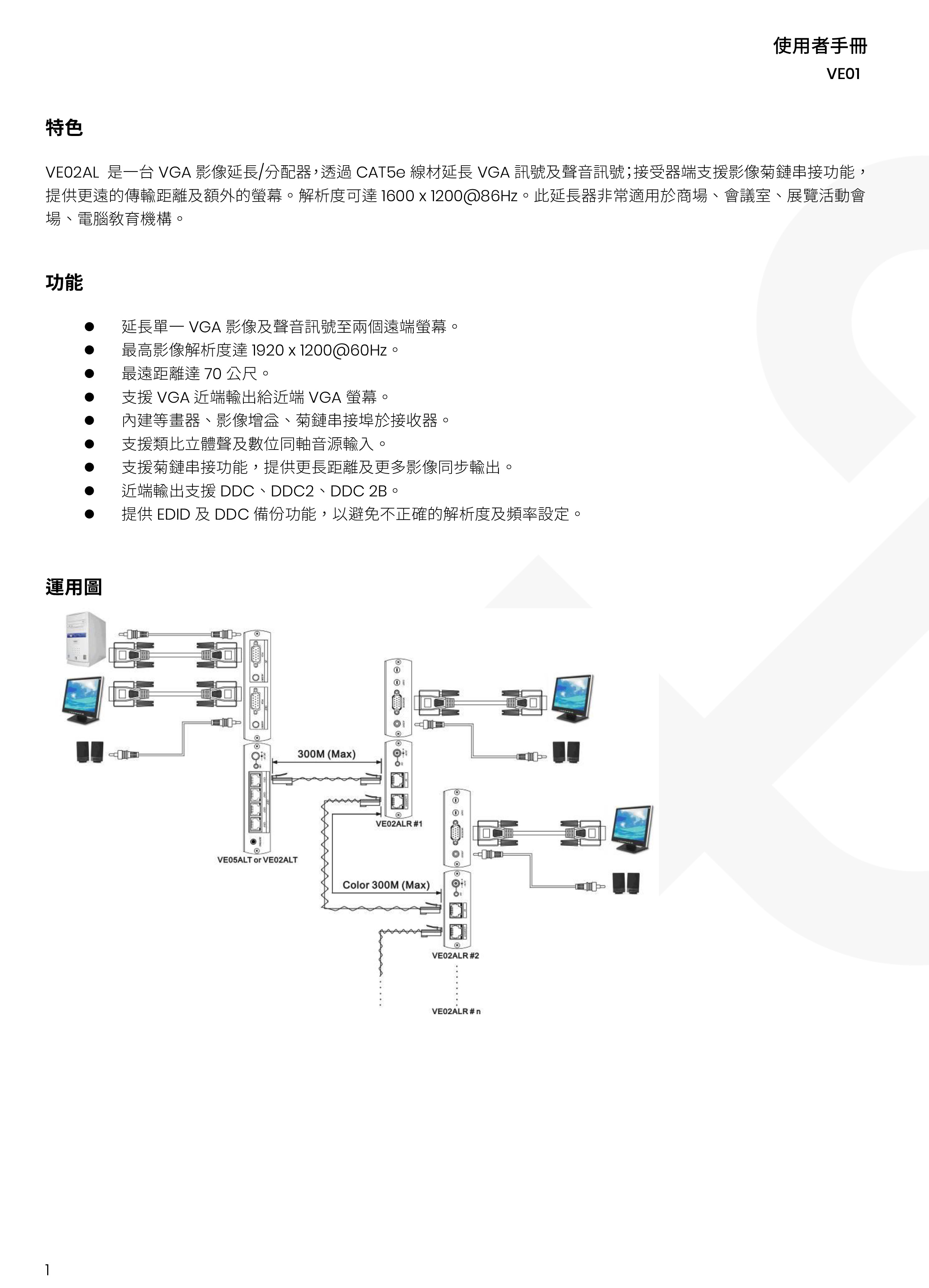 昌運監視器 VE02AL 1進3出VGA/聲音分配CAT5e 延長器 最遠距離達70公尺