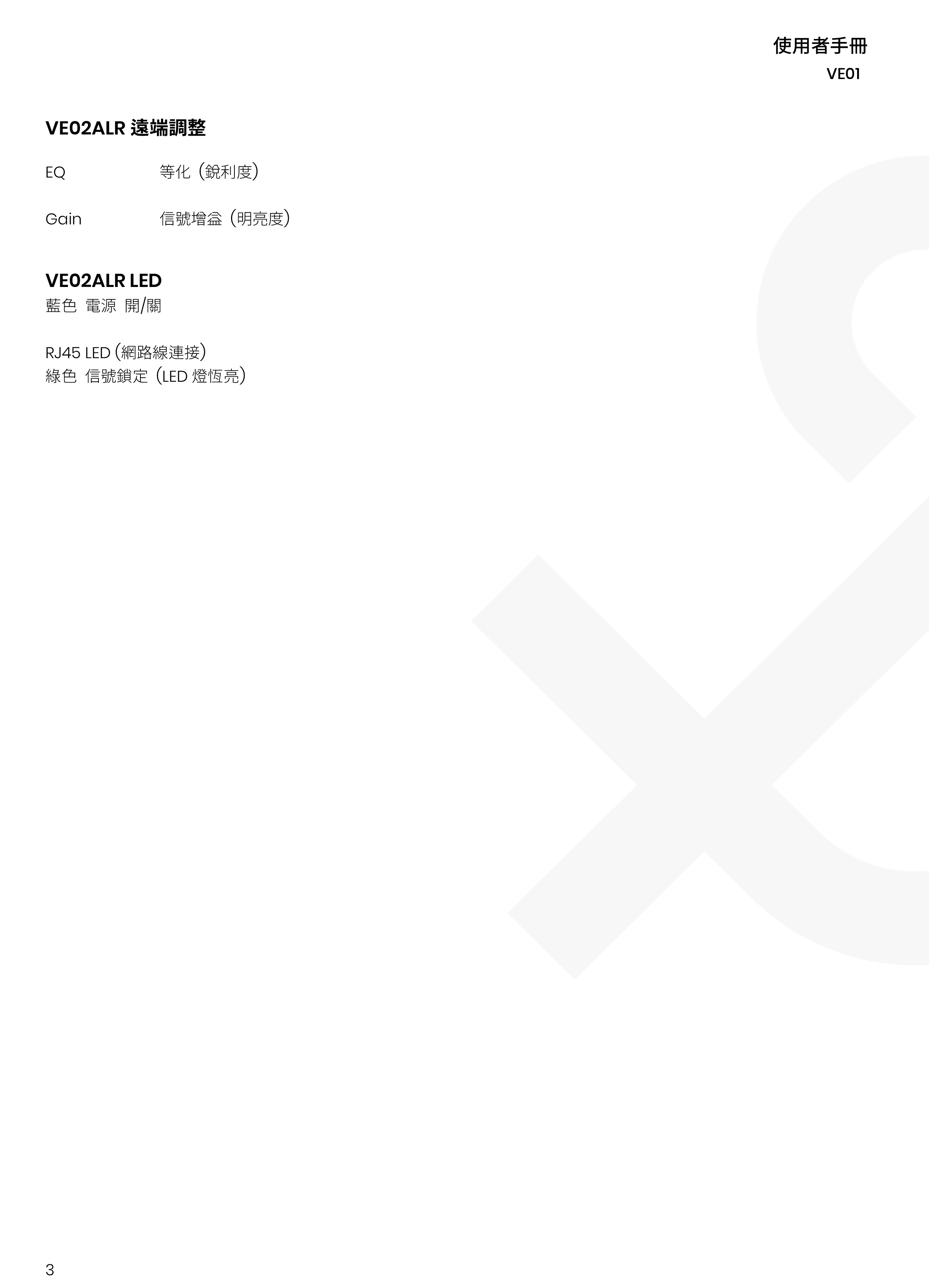 內建等畫器、影像增益、菊鏈串接埠於接收器。