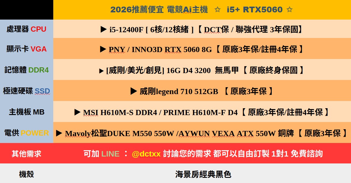 2026推薦便宜電競Ai主機⭐i5+RTX5060⭐10天出貨( B製程 )