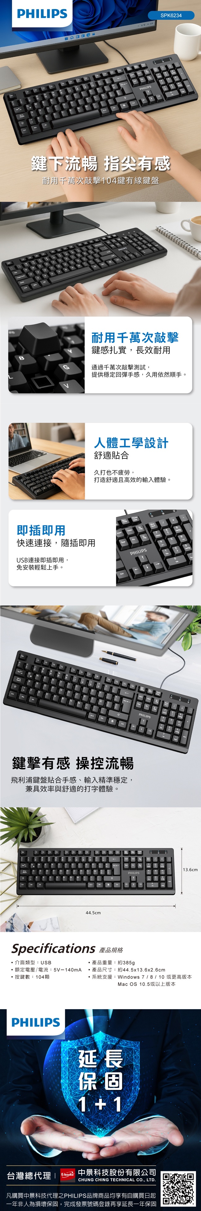 [PHILIPS] PHILIPS 104鍵有線鍵盤-SPK6234