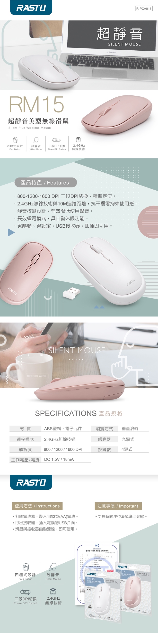 [ RASTO ] RM15 超靜音美型無線滑鼠-白