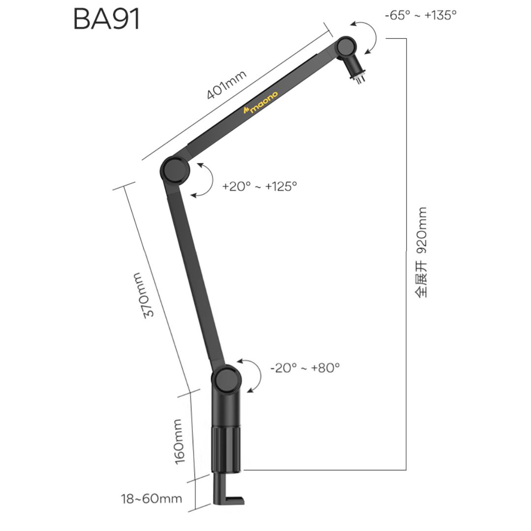 Maono 麥克風吊臂,讓您用單手完成專業收音調整,收音不妥協,畫面更清爽!