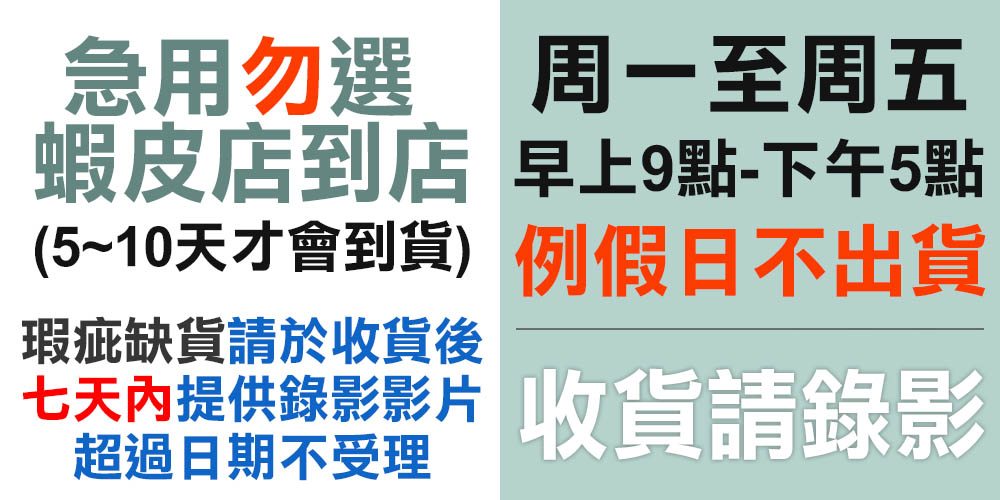 當天13:00前下標訂單可當天出貨,六日不出貨