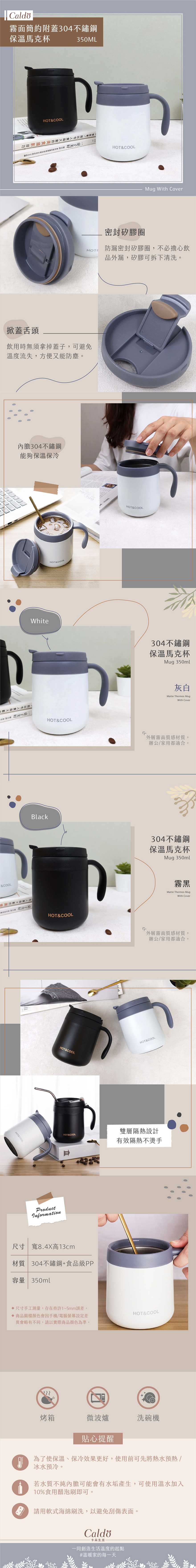 [ Caldo卡朵 ] 霧面簡約附蓋保溫馬克杯-黑