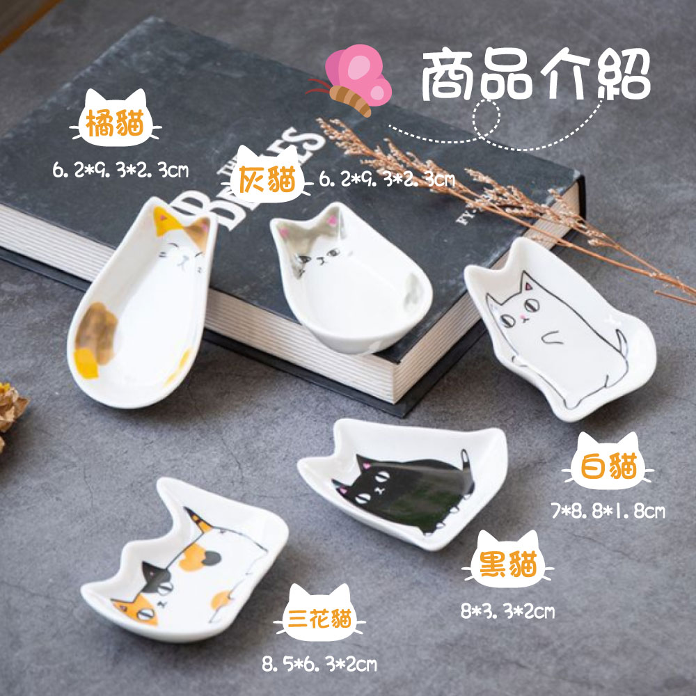 吃水餃要有醬油吃火鍋必須沾醬那你就需要這款貓咪醬油碟五款軟萌造型*陶瓷材質 光滑不傷手*底部加高*約2cm深度 小體積大容量商品選項:橘貓/灰貓/白貓/黑貓/三花貓