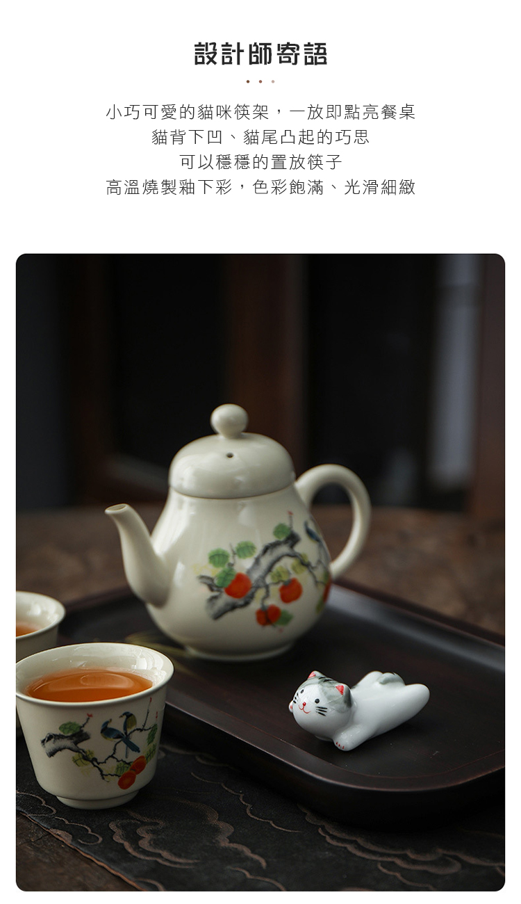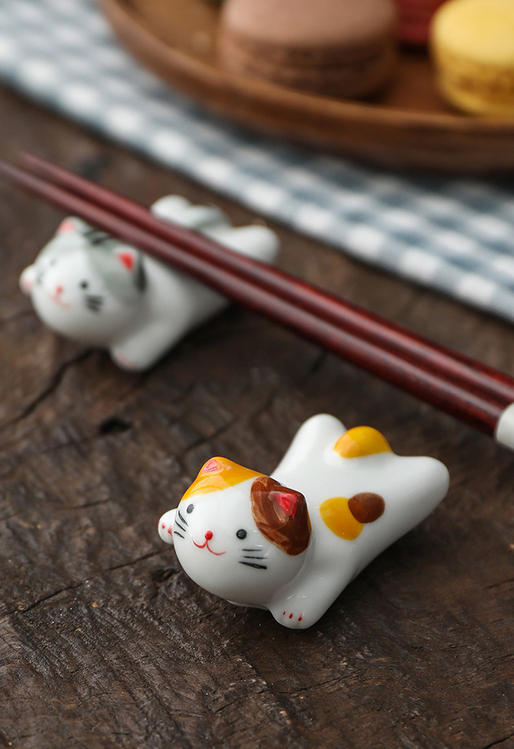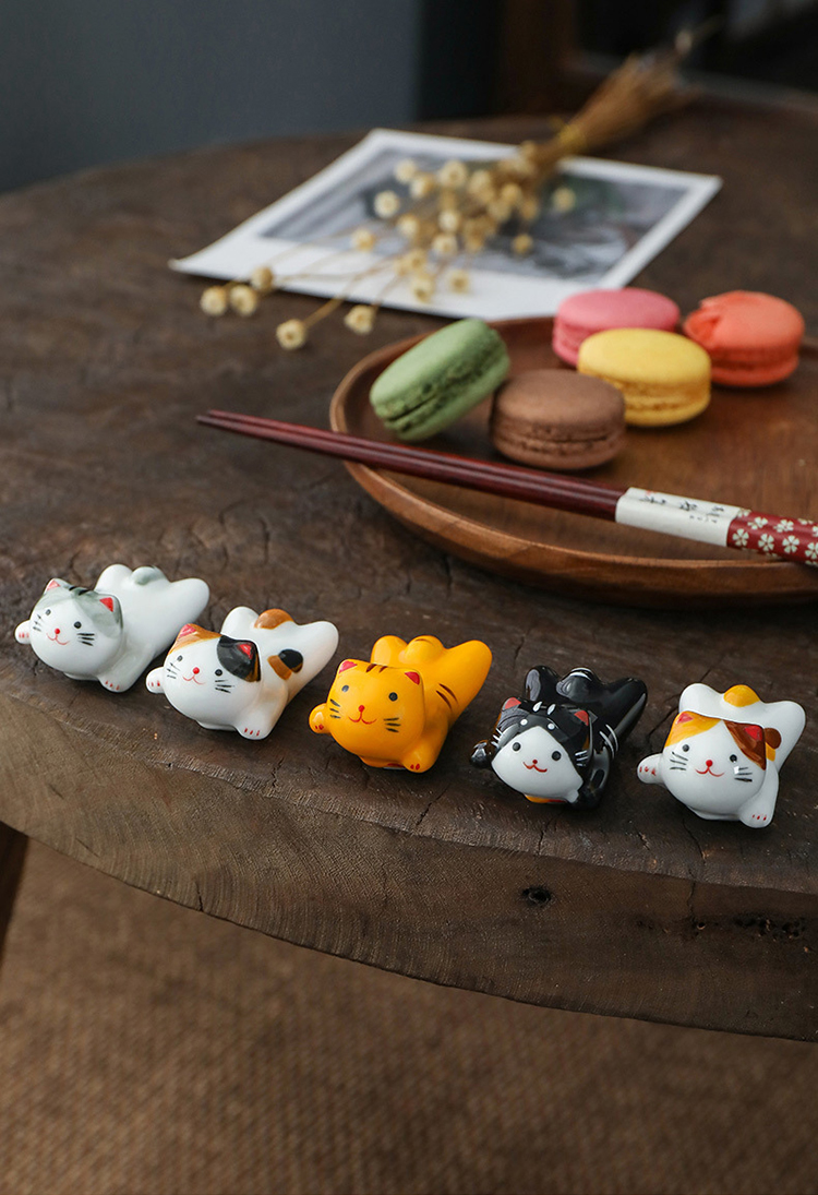 【產品信息】名稱:日式貓咪筷架材質:陶瓷工藝:手繪釉下彩款式:5款可選