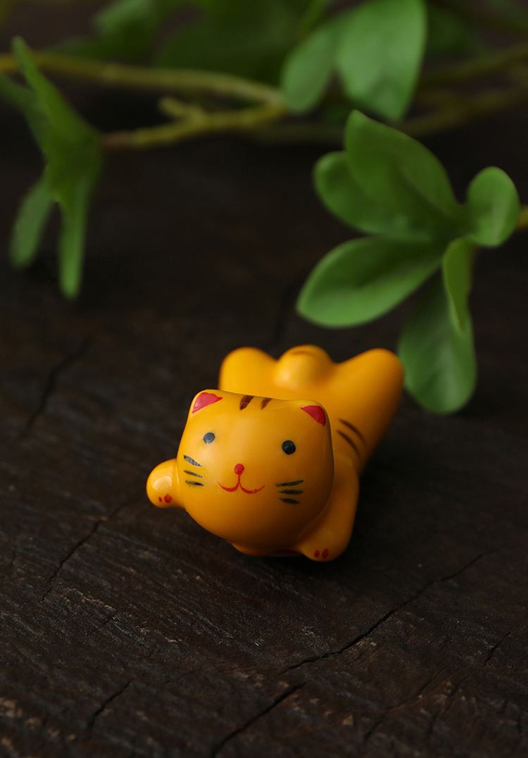 日式貓咪陶瓷筷架【橘棕三花】 架托 貓筷架 貓咪 陶瓷 筷架 防滑 橘貓 擺台 家用 創意 筷子架 美短 賓士貓 三花貓