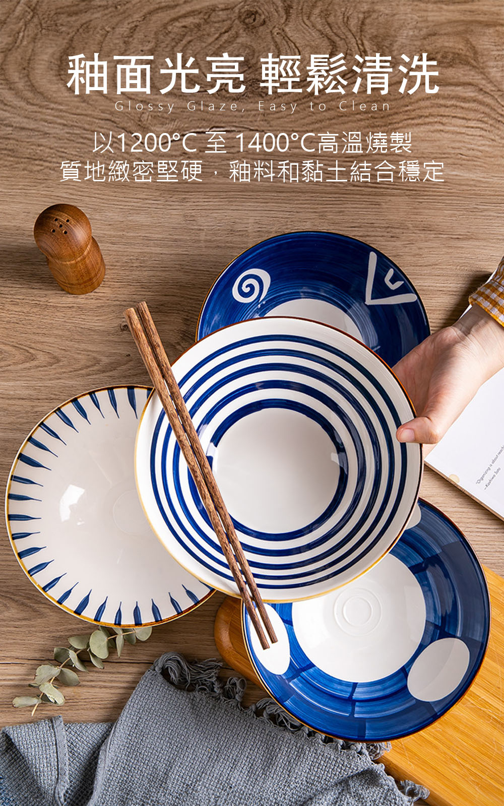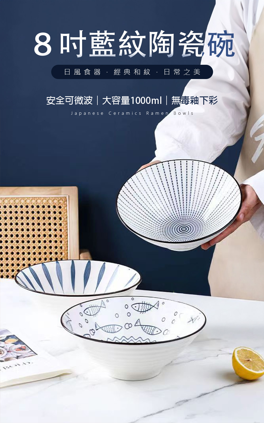 8吋拉麵碗【12款可選】日式拉麵碗 斗笠碗 1000ml 寬口碗 瓷碗 山田碗 手繪碗 大碗公 泡麵碗 碗公 陶瓷碗 烤箱 洗碗機