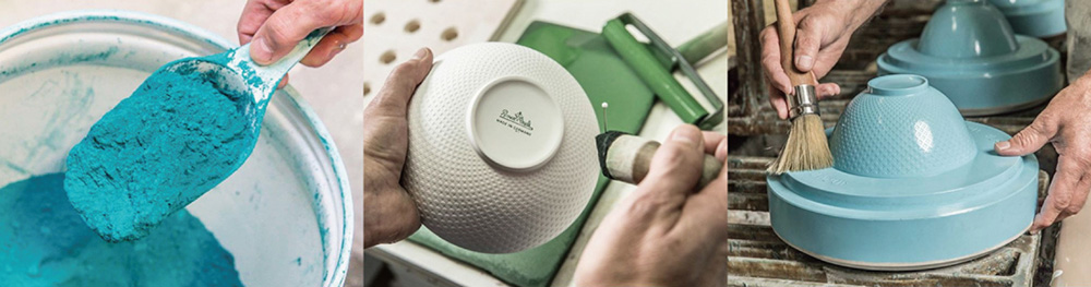 瓷器製造需要經過生產、加工與精細加工三個階段,在這個過程中創造出每款產品的特殊性。所有的步驟都需要熟練的工藝技術與漫長而複雜的程序。