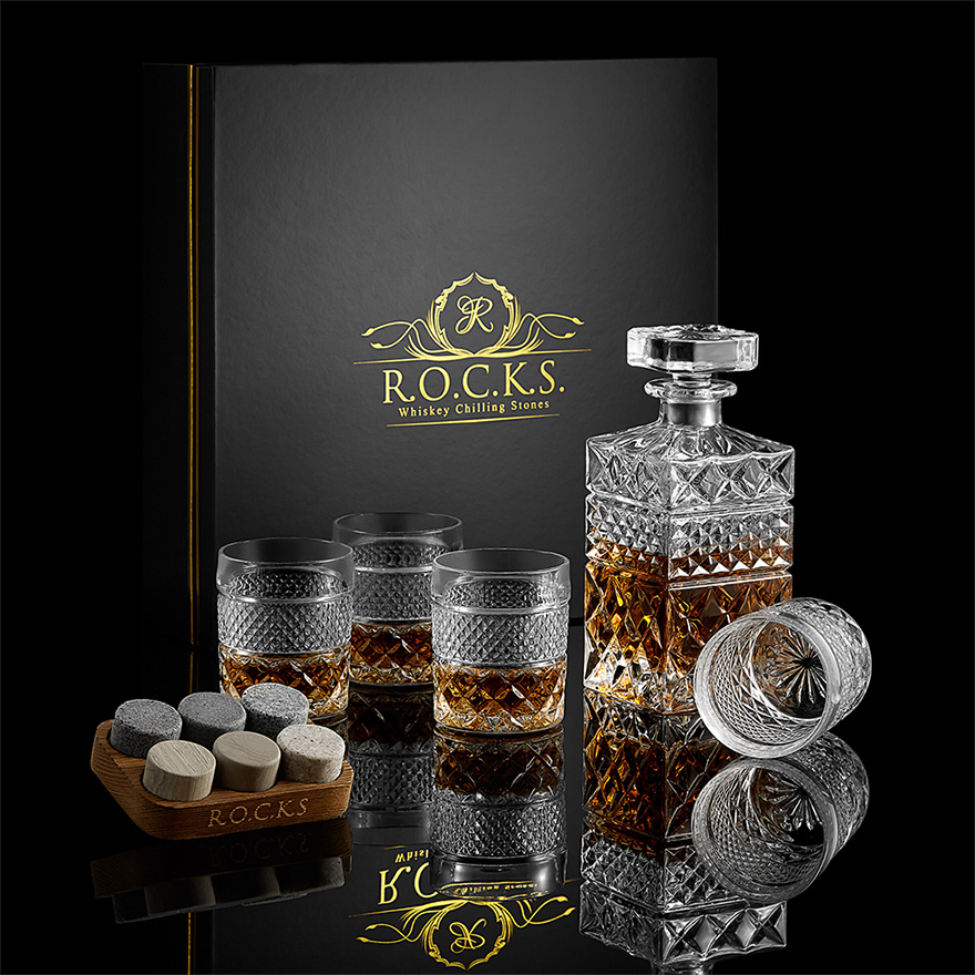 禮盒內含以下商品: -威士忌冰酒石 x 6威士忌冰酒石,每塊都有不同的顏色和花崗岩紋路,可快速冷卻、但不稀釋酒的口感-冰酒石座 x 1R.O.C.K.S.™️ 經典冰酒石座,可擺放6塊冰酒石-威士忌水晶酒瓶(22oz - 650ml) x 1-威士忌水晶酒杯(8.5oz - 250ml) x 4使用方法: