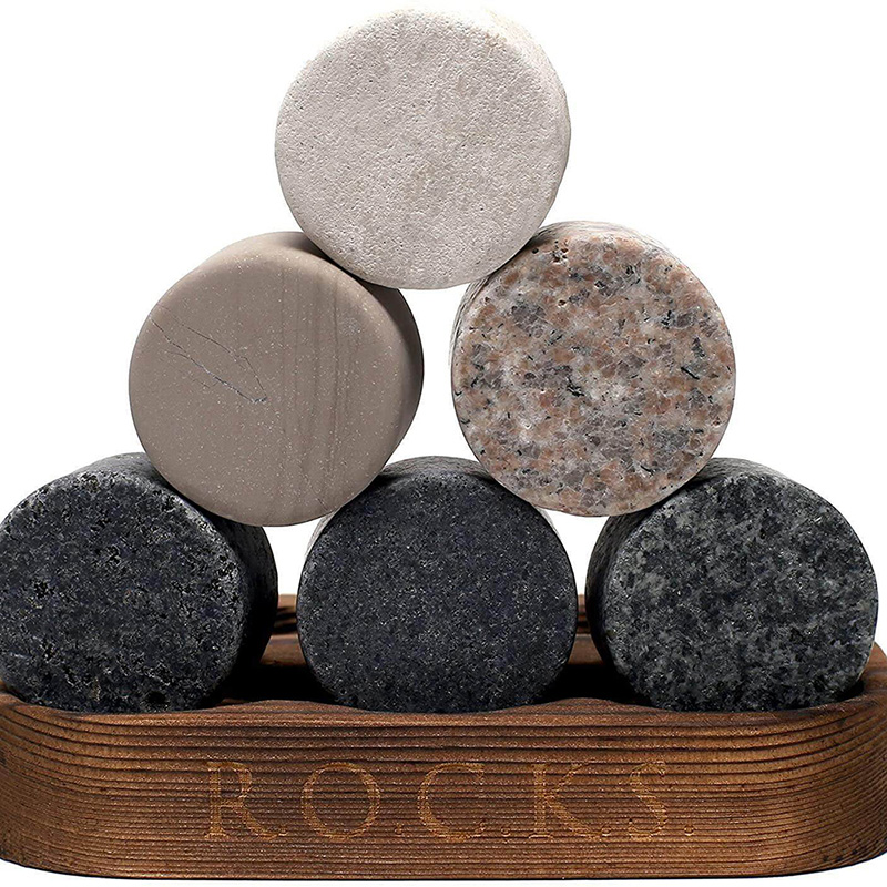 威士忌冰酒石 x 6威士忌冰酒石,每塊都有不同的顏色和花崗岩紋路,可快速冷卻、但不稀釋酒的口感冰酒石座 x 1R.O.C.K.S.™️ 經典冰酒石座,可擺放6塊冰酒石冰酒石使用方法: