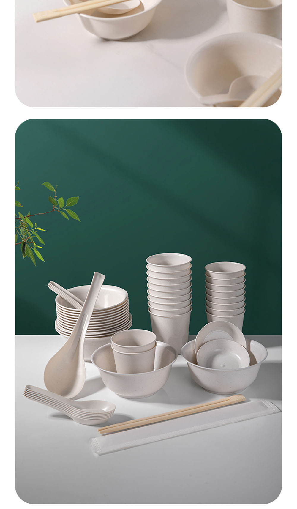 露營用品一次性稻殼餐具4件套(稻殼餐具 環保碗筷 野餐餐具 家用一次性碗)
