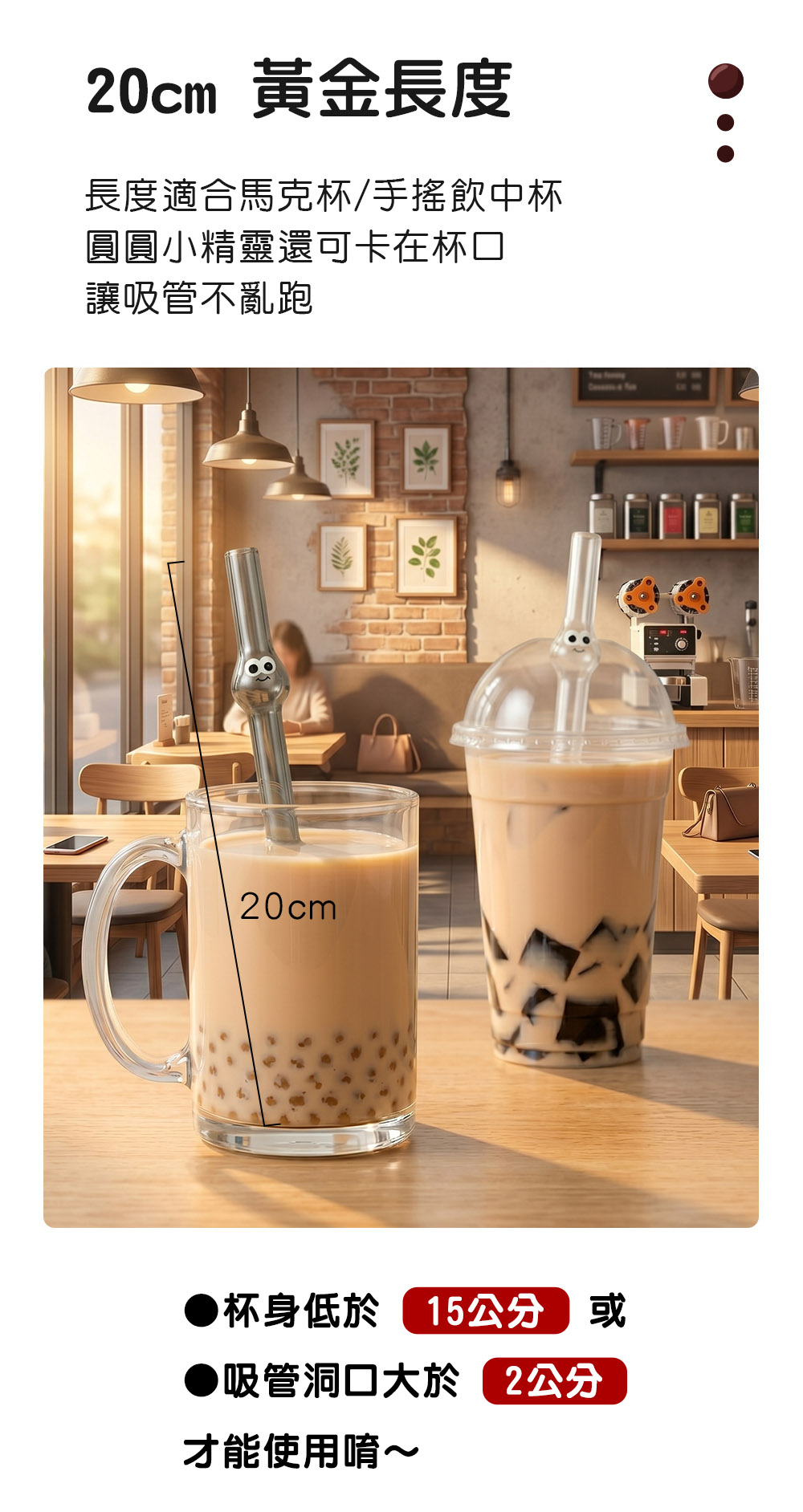 讓**「小精靈表情彩色玻璃吸管」**拯救你的午茶時光!