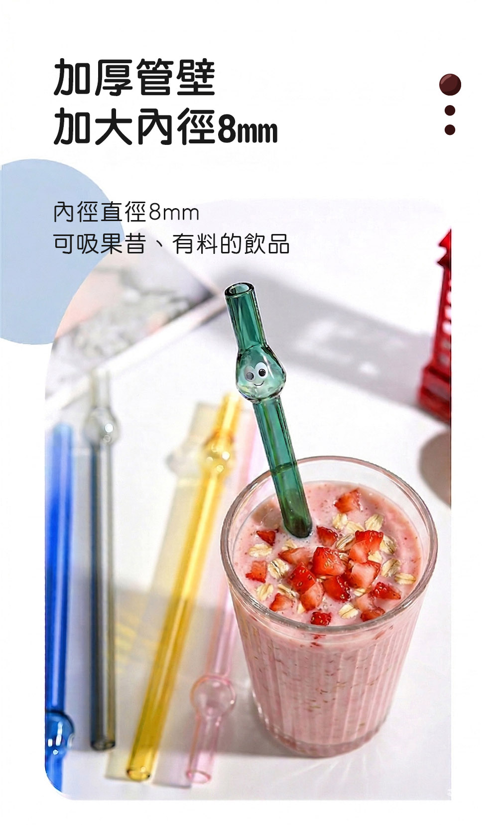 小珍珠玻璃吸管 粗吸管 玻璃吸管 【5色可選】造型吸管 環保吸管 藍色小精靈 高硼矽耐熱玻璃 耐高溫 飲料配件 居家生活 聖誕禮物
