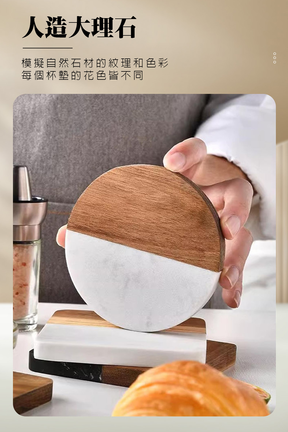 原木大石理杯墊 【正方形-白色大理石(無腳墊)】大石理相思木拼接杯墊 相思木杯墊 木質杯墊 杯墊 人造石 隔熱杯墊 厚杯墊