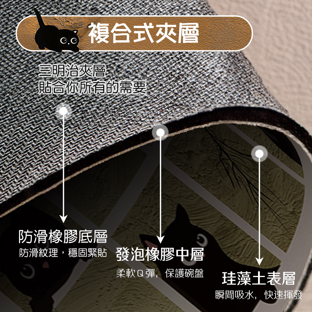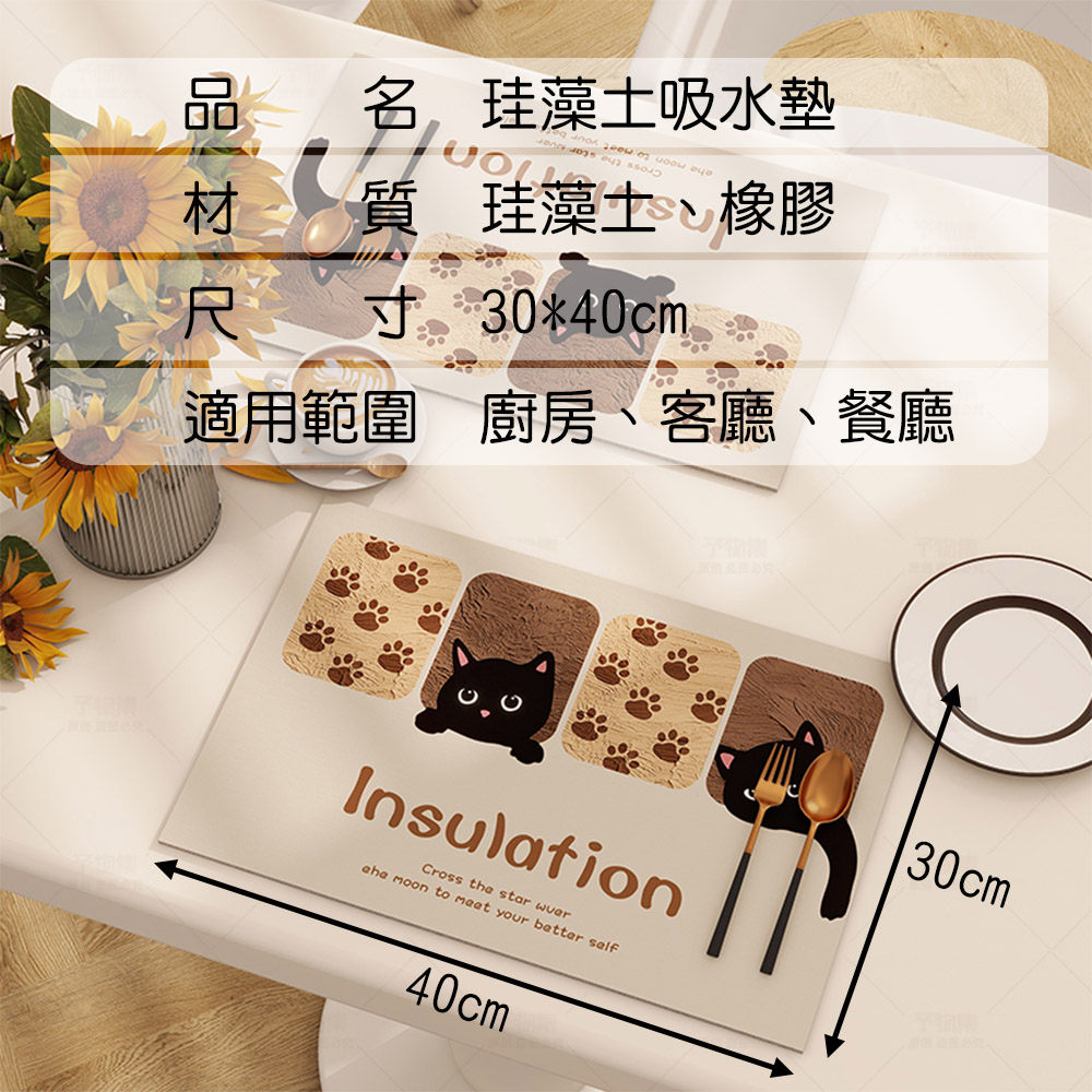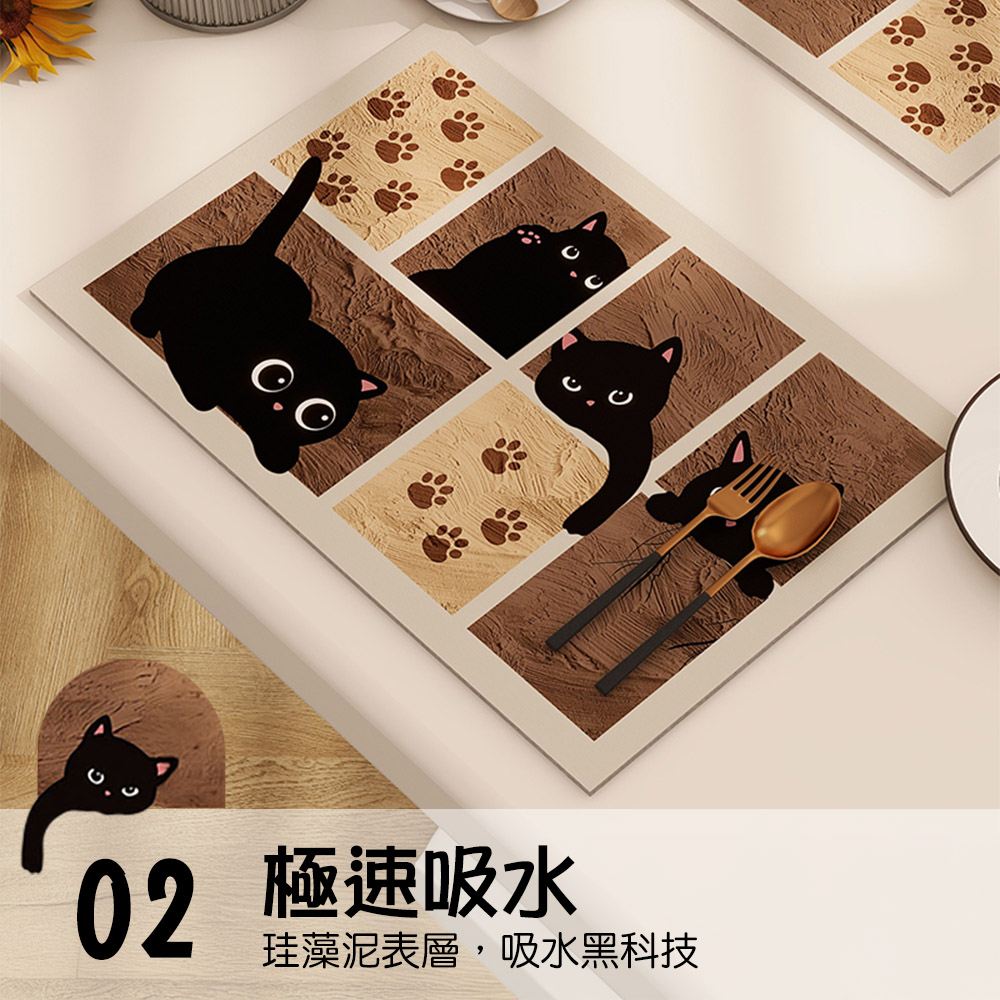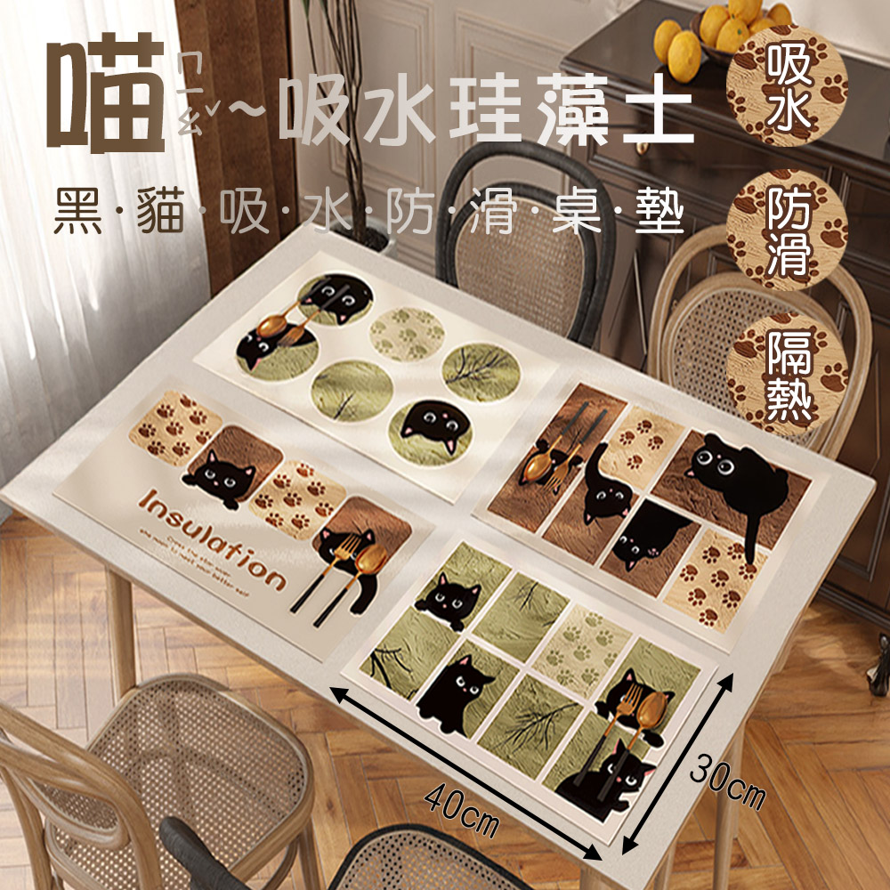 療癒系貓奴必收!🐾這款黑貓圖案珪藻土吸水桌墊不只防水防滑超實用還融入日系可愛插畫風格🐱讓用餐、喝茶時光都充滿溫馨氛圍☕擺在餐桌上或辦公桌都是超吸睛小亮點!✨【產品信息】品名:珪藻土吸水墊材質:珪藻土、橡膠尺寸:30*40cm適用範圍:廚房、客廳、餐廳