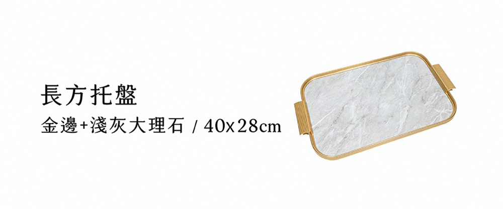 品名:Kaymet 長方托盤 40x28cm 金邊+淺灰大理石