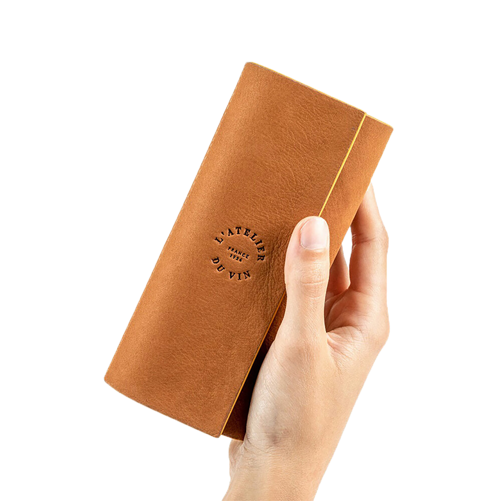 來自法國L'Atelier du Vin (LDV) ,依循法國百年酒器工藝,完美結合功能與美學,推出充滿游牧精神的Nomad皮革品酒套組系列,每件都是獨一無二的手工精品,皮革套均由小鹿皮革製成,天然原始的顏色會隨著時間和旅行而呈現出古銅色的質感。皮革套內部則由色調沉穩的耐用皮革製成,方便行李箱隨身攜帶。