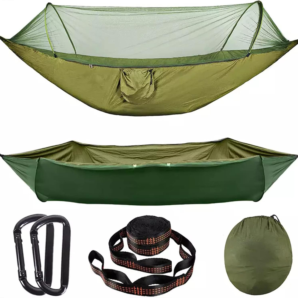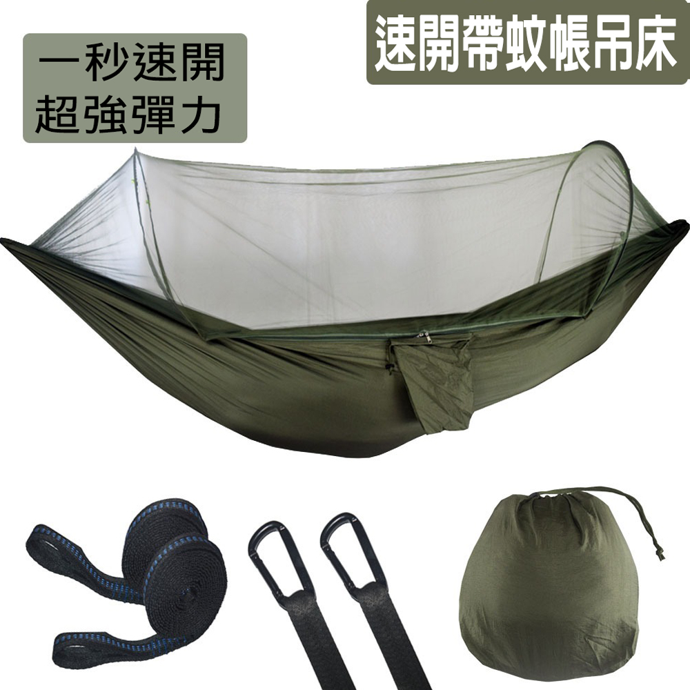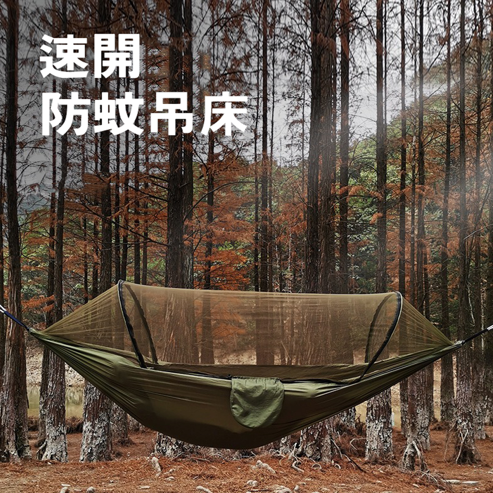 【SV61320】單/雙人自動速開蚊帳吊床 尼龍綁帶吊床 自動速開吊床帳篷 防側翻 撐桿吊床 戶外露營用品