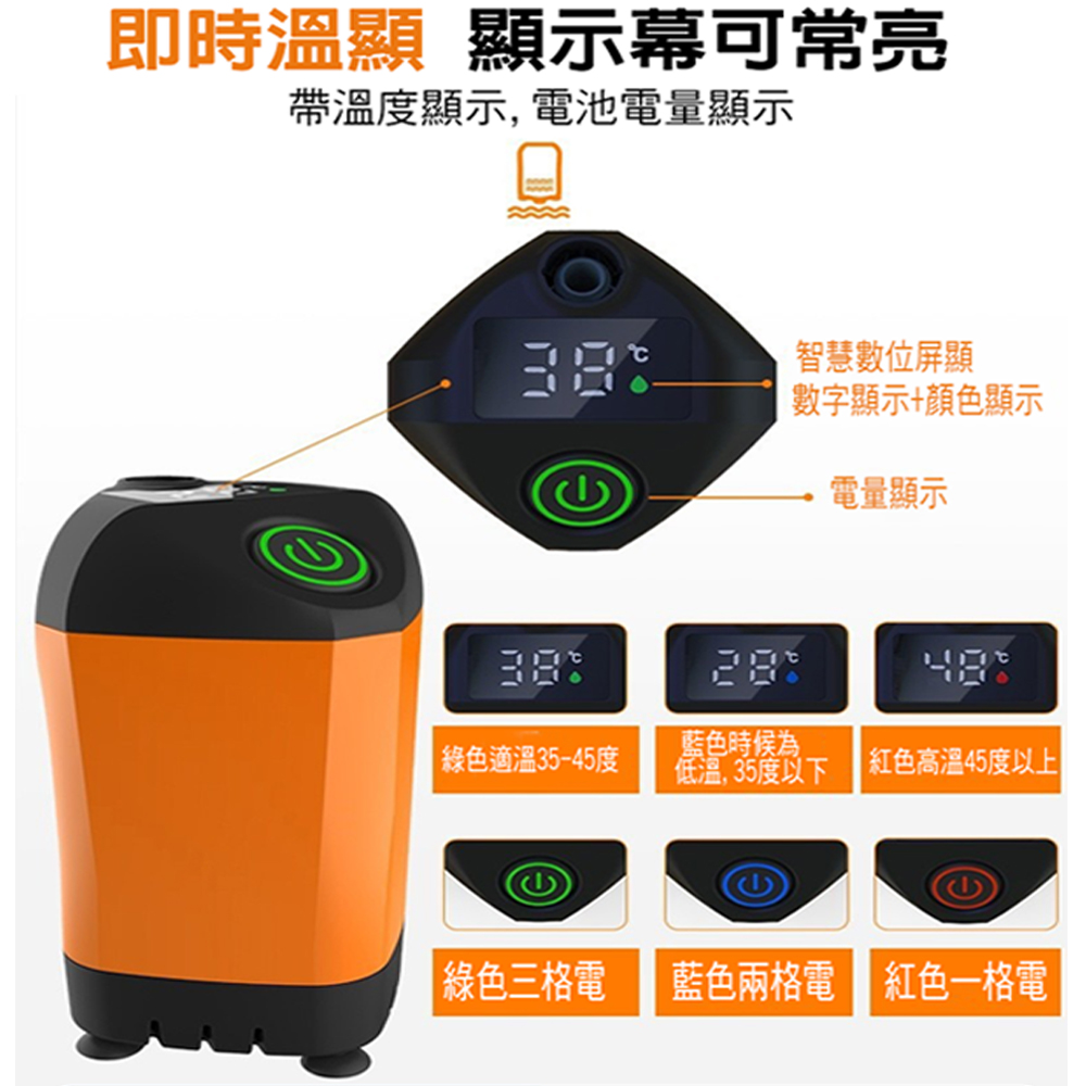 顯示綠色:適溫35~45℃、三格電量