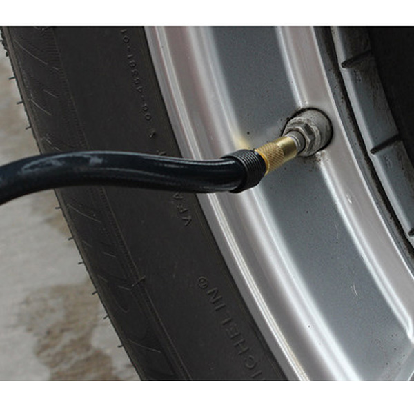 2.將胎壓計銅嘴擰入(旋入)氣門嘴,壓緊。
