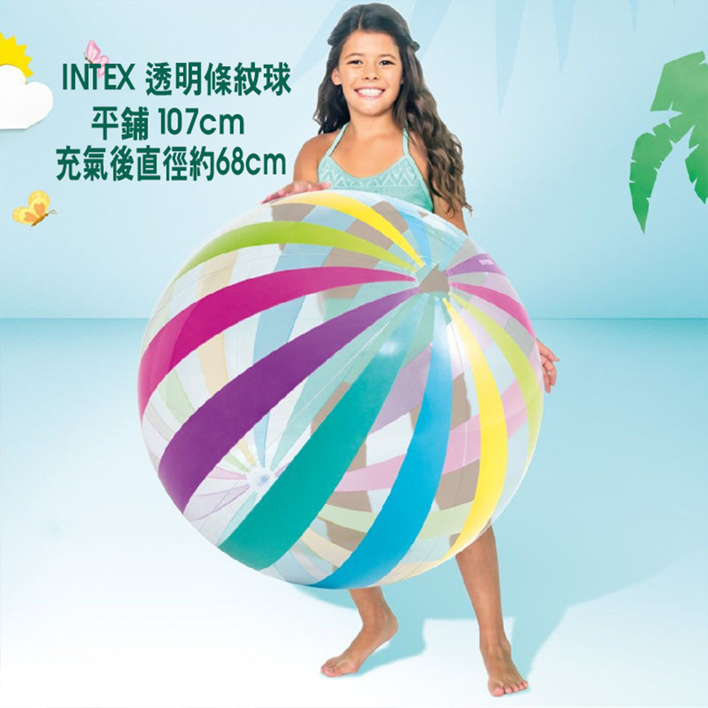 【INTEX】七彩特大充氣遊戲球條紋款 -充氣後直徑約70cm (59065)