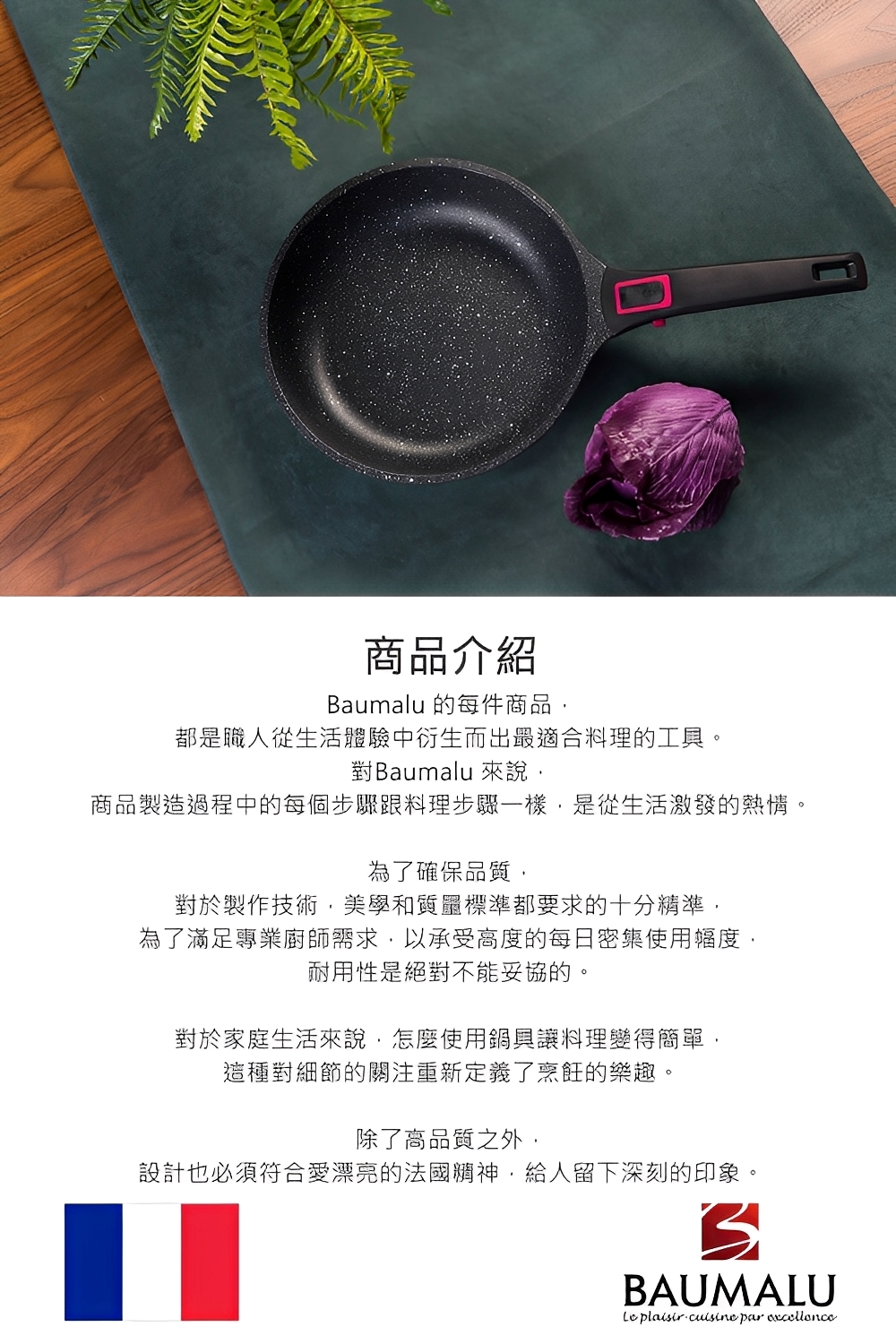 創立於1971年的Baumalu ,起源於法國東部美麗阿爾薩斯地區,位於德法之間的這個地區,Baumalu 有著德國人製作的嚴謹技術,並伴隨著法國悠久的美食傳統。秉持著好料理要用好鍋具襯托的精神,Baumalu 致力於開發各種不同商品,除了為專業廚師打造精美的廚房用具,也為一般家庭生產適合的商品。