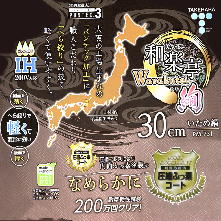日本製造品質保証,採用合金+日本大金不沾塗層,可用鐵鏟超耐磨超耐用,傳熱快速,導熱更均勻,儲熱性佳,雙引水導角設計不回漏,適用IH電磁爐、紅外線爐、瓦斯爐、電爐、鹵素爐,仿木柄質感溫潤時尚美觀,一鍋多用料理食物好鍋具。