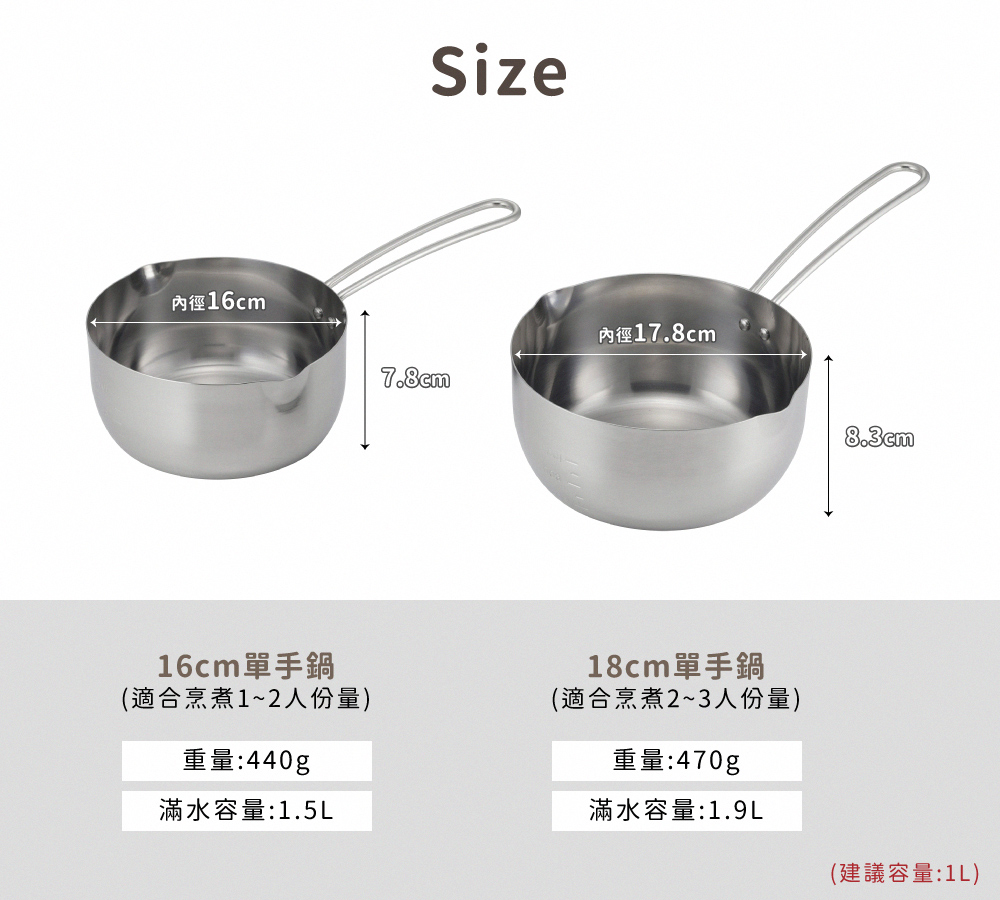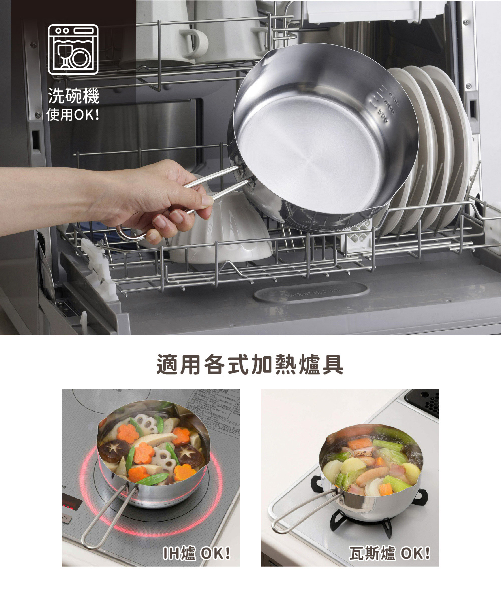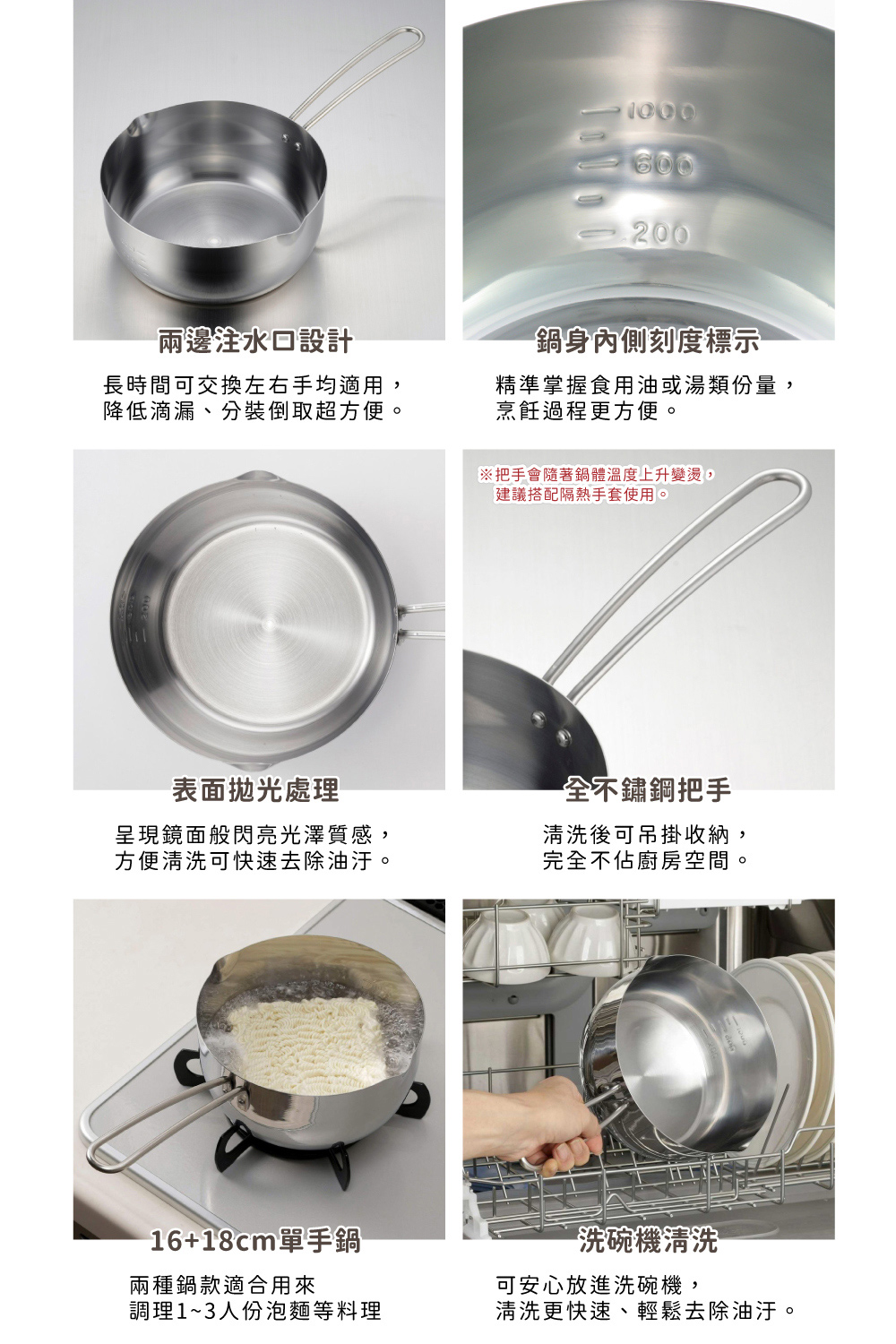 【下村企販】日本製全不鏽鋼泡麵鍋單手鍋 2件組(16cm +18cm/洗碗機可用)