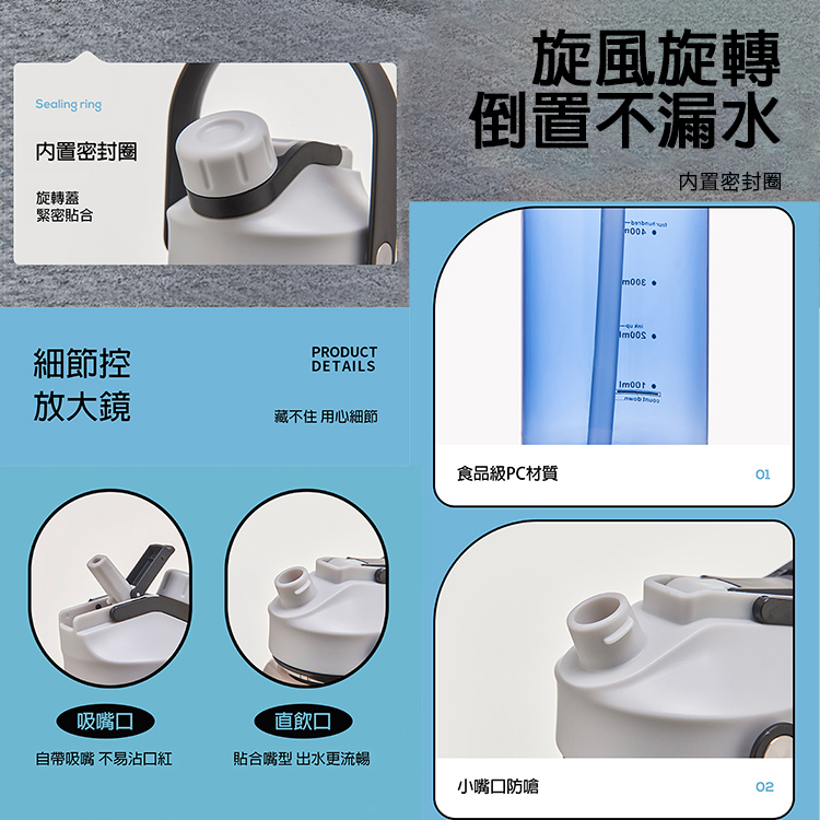 Kiyodo雙飲式水壺-1L-灰黑色-2支