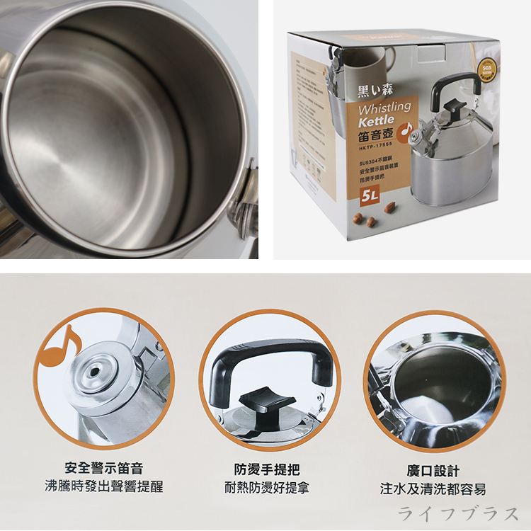 黑之森全鋼304不鏽鋼笛音壺-5L-1支