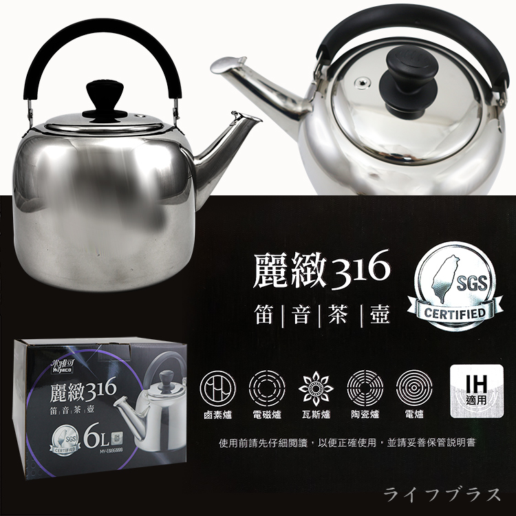 米雅可麗緻316不鏽鋼笛音茶壺-6L