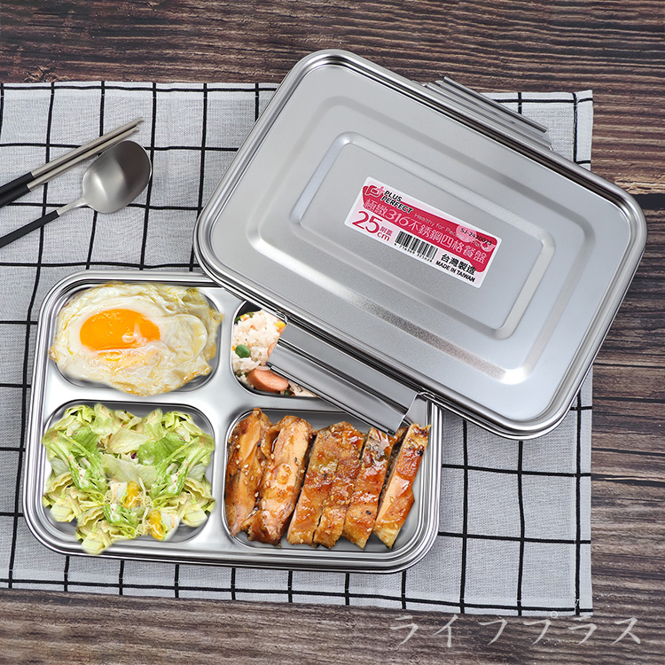 PLUS PERFECT極緻316不鏽鋼四格餐盤-25cm-附蓋-1入